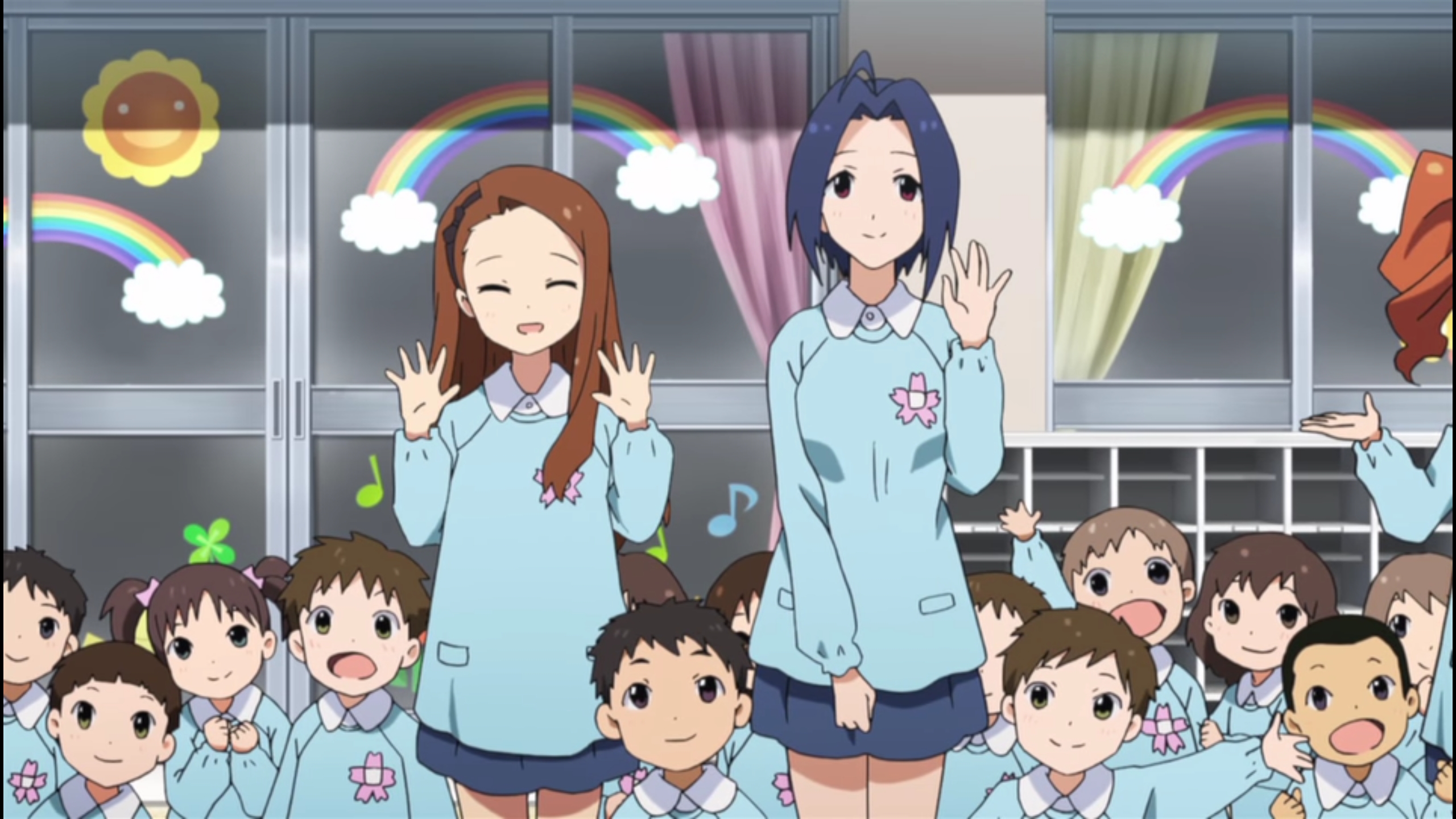 스토리적인 면에서는 전통의 신호등, 즉 미키, 치하야, 하루카의 각 문제가 일어난다. 미키는 본인의 문제였고 치하야는 외부의 문제, 그리고 하루카는 성공을 이룬 후에 결국 내부의 문제. 단순히 웃으며 춤추는 애니메이션이 아니라, 각 화에 캐릭터 스토리를 귀엽고 재밌게 담아내면서도 현실성있는 갈등 요소를 가지고, 진지한 분위기로 풀어나가는게 굉장히 맘에 들었다. 특히 그 갈등이 해소되는 장면에서의 연출또한 음악과 영상으로 감동을 주었다. 비주얼적인 측면에서 가장 극적이었던 건 치하야겠지만, 가장 스토리적으로 극적이었던 건 하루카의 이야기가 아니었나 싶다.